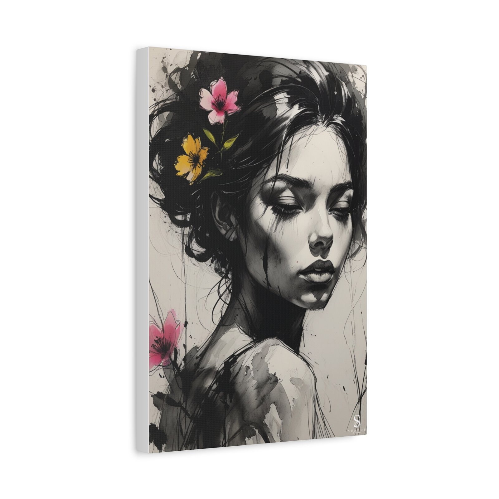 Elegant Floral Portrait Canvas Art, Modern Wall Decor, Home Office Art, Gift for Her, Feminine Touch, Boho Wall Art, Contemporary Art